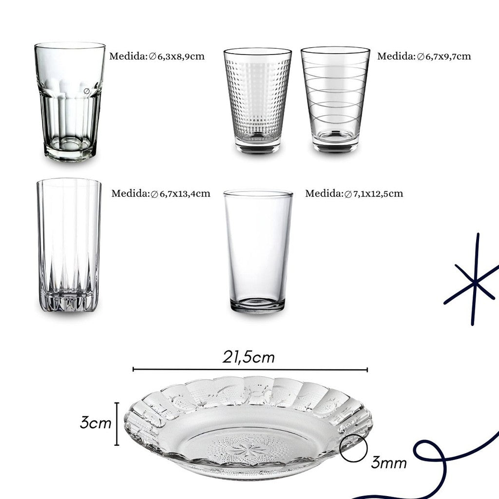 - Contém: 6 pratos + 6 copos;
